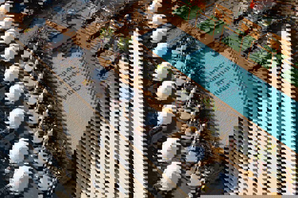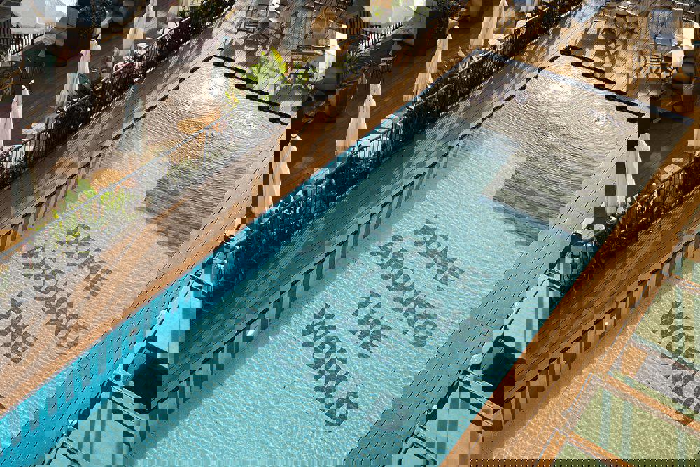 Ik zit aan de rand van het zwembad, mijn benen bungelen in het frisse water en de zon verwarmt mijn gezicht. Gelukkig zorgen de wuivende palmbomen voor een verkoelend briesje op dit zonovergoten eiland.