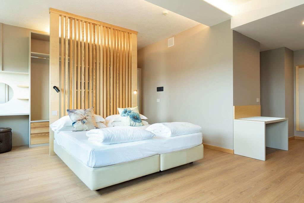 De kamers zijn ingericht in warme bruintinten en hebben een rustige, verzorgde uitstraling. Elke kamer beschikt over een balkon, waardoor je altijd een plek hebt om buiten te zitten en even terug te blikken op de dag.