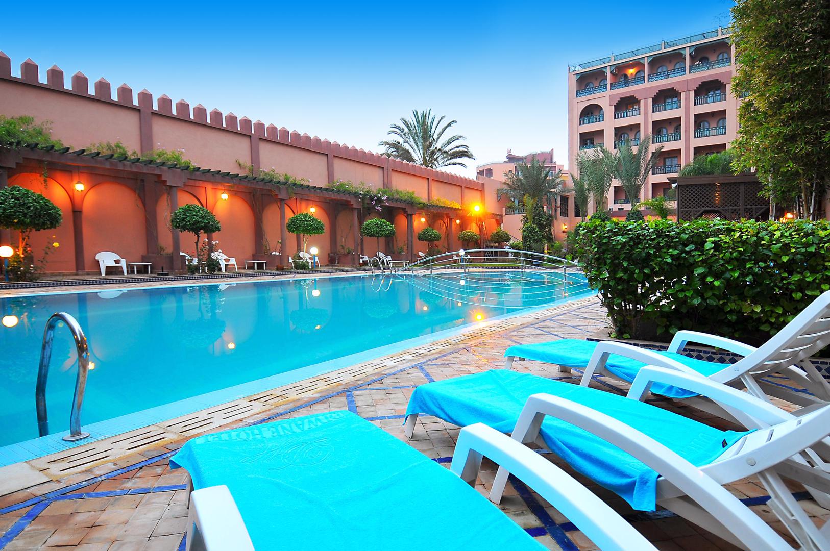 Op zoek naar een sfeervol verblijf vol oosterse charme? In de moderne wijk Guéliz in Marrakech ligt het 4-sterrenhotel Diwane. Hier ervaar je de warme sfeer van 1001 nacht, gecombineerd met het levendige stadsleven van Marrakech. Zodra je het hotel binnenstapt, voel je de gastvrijheid dankzij de traditionele inrichting en het vriendelijke personeel. Overdag neem je een verfrissende duik in het zwembad of geniet je van een drankje in de loungebar. ’s Avonds proef je de Marokkaanse keuken in het restaurant of ontspan je in de kleine spa. Dankzij de gunstige ligging ontdek je vanaf hier eenvoudig de stad, van de kleurrijke souks tot het beroemde Djemaa El Fna-plein. Een perfecte keuze voor wie comfort en cultuur wil combineren. Boek jouw stedentrip naar Marrakech bij D-reizen en ervaar het zelf!