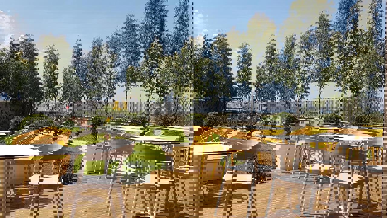 De vlucht in de lucht, die Ursula voor mij had bedacht, bleek eentje met voorbedachte rade. Vlak na de landing stapten we in de auto. “We gaan naar Jens, de eigenaar van Appartementen Miranda”, had ze lachend gezegd. Via het pad in de tuin, waar de palmen en cactussen nog groter en mooier waren dan vanuit de lucht, liepen we naar eigenaar Jens die net de barbecue naast het zwembad aanstak. “Dat zie je niet van boven hè?”, lachte hij toen hij mij naar de mozaïeken bankjes zag staren. De kolen waren aan het smeulen dus we hadden nog even tijd voor een wandeling. Langs het grote zwembad met de ligbedden, door de enorme tuin, naar de acht studio's met de moderne en kleurrijke inrichting. Ik zuchtte diep. “Voor jou!”, lachte hij en gaf mij de sleutel. “Zie ik je zo terug voor het eten van de barbecue?” zegt Jens tegen mij terwijl ik mijn appartementje aan het verkennen ben.