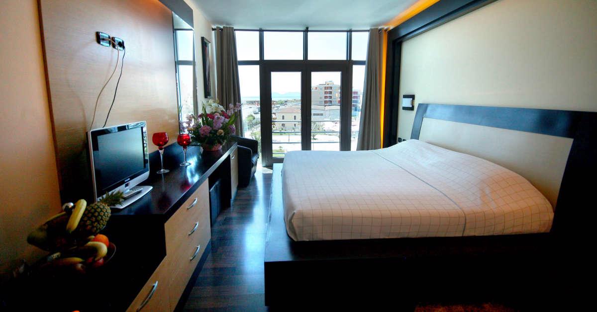 In de zonnige badplaats Vlore vind je het 4-sterrenhotel Hotel Vlora International, gelegen direct aan de baai en op steenworp afstand van de promenade. Het hotel combineert comfortabele kamers met een moderne uitstraling en een gunstige ligging. Je wandelt zo naar het strand en loopt via de boulevard eenvoudig de stad in. Binnen vind je onder andere een binnenzwembad en wellness-faciliteiten, waardoor je ook op minder zonnige dagen ontspannen verblijft. Het restaurant serveert internationale gerechten en er zijn diverse bars aanwezig voor een drankje tijdens de dag. Dankzij de centrale locatie en goede faciliteiten boek je hier zorgeloos je vakantie. Bekijk snel de prijzen bij D-reizen en boek jouw verblijf vandaag nog!