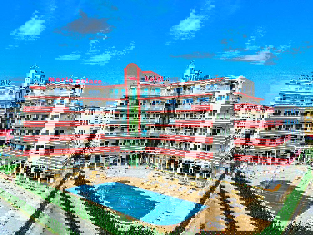 Verblijven in een aangename accommodatie in Zonnestrand Sunny Beach? Hotel Maria Palace is een luxe 4-sterren hotel, perfect voor een fijne vakantie. Ruim 596 reizigers beoordelen Hotel Maria Palace gemiddeld met een 8. Meer weten? Bekijk dan nu de foto’s en beoordelingen van Hotel Maria Palace, voor meer informatie! Ben jij toe aan een heerlijke vakantie in Bulgarije? Boek jouw vakantie naar Hotel Maria Palace vandaag nog!