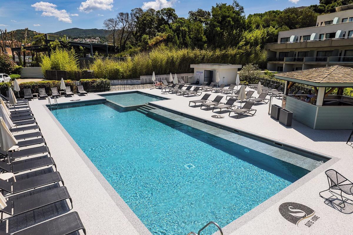 Ben je op zoek naar een modern verblijf in het hart van Porticcio? Het 4-sterren Suite Home Porticcio biedt de ideale uitvalsbasis voor jouw vakantie op Corsica. Op slechts 300 meter van het strand en omgeven door winkels en restaurants, geniet je hier van comfort en gemak. De ruime suites zijn voorzien van een kitchenette, perfect voor wie graag zelf kookt. Ontspan bij het verwarmde buitenzwembad of verken de levendige boulevard van Porticcio. Boek snel je verblijf bij D-reizen en ervaar het zelf!