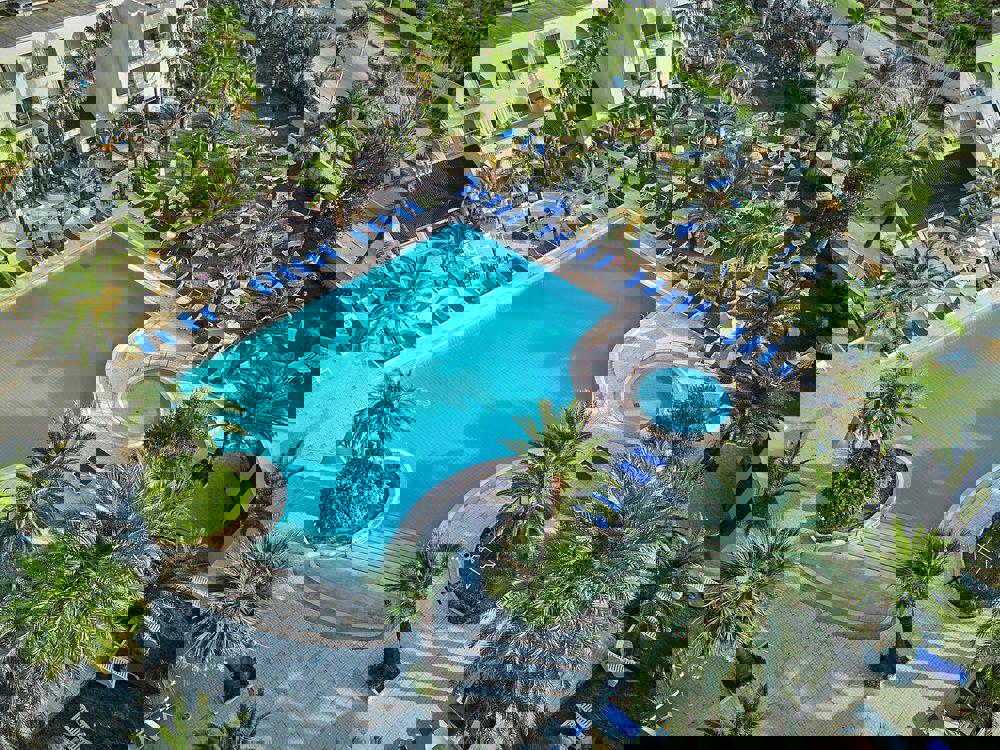De appartementen liggen allemaal in weelderige mooie tuin waar ook het zwembad in ligt. Bij poolbar Lido kun je niet alleen verfrissende drankjes maar ook lekkere snacks en lichte maaltijden bestellen. Er is ook een restaurant waar maaltijden met lokale producten worden bereid. Naast het hotel ligt een sportcentrum, waar je in de openlucht verschillende sporten mogelijk zijn en je sportlessen kunt reserveren. Ook aan ontspanning voor de sportievelingen is gedacht want bij de bar Clubhouse kun je neerstrijken voor een welverdiend hapje en drankje.