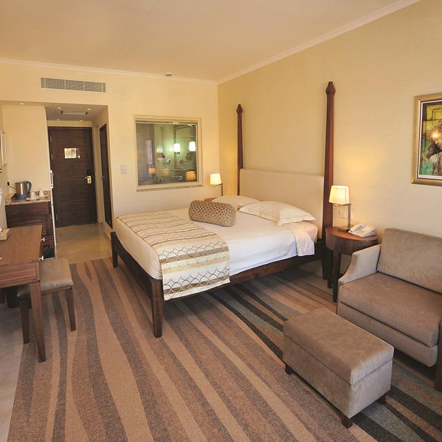 Het hotel heeft een eigentijdse uitstraling. Zowel in de openbare ruimtes als in de kamers. Je ziet veel aardse kleuren en er zijn moderne faciliteiten. Zo zijn de kamers uitgerust met mooie flatscreens en fijne koffiehoekjes, en vind je buiten in de tuin een state-of-the-art infinty pool met whirlpools, watervallen en hydrojets. Als extraatje kijk je vanaf hier ook nog eens uit op het glinsterende zeewater. Ook is er een speciaal kinderzwembad dat net als de kidsclub ‘Little Monsters’heet.