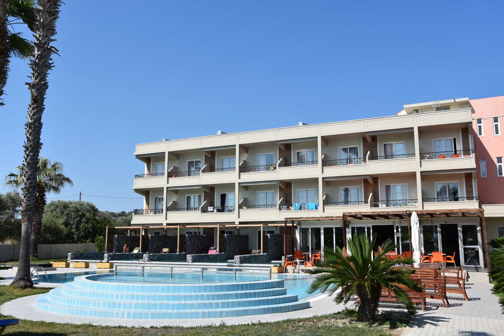 Boek een bungalow in de tuin of verblijf in een kamer in het hoofdgebouw. Welke kamer je ook kiest, je geniet altijd van een goede nachtrust. Boek je op basis van all inclusive dan zijn je drankjes en al je maaltijden inbegrepen. De Griekse gastronomie wordt goed vertegenwoordigd. Met maar liefst drie restaurants en meerdere bars geniet je elke dag weer van heerlijk eten en drinken.