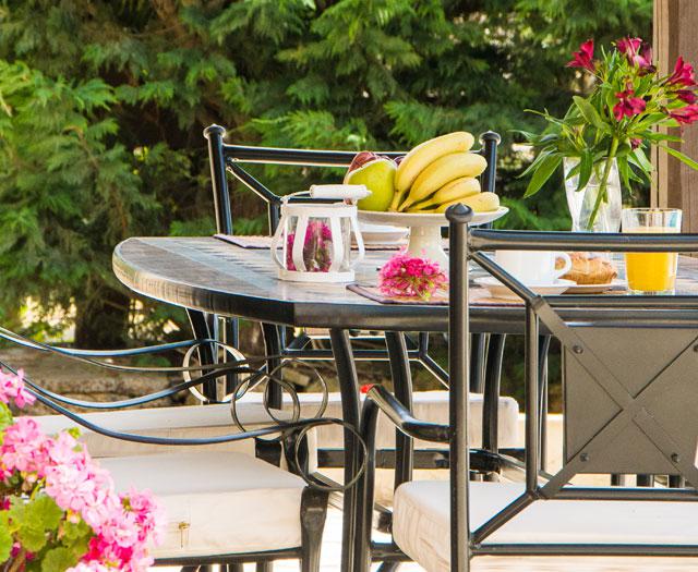 Datzelfde geldt voor Boschetto Village, een uitgestrekt en bosrijk gebied waar de schitterende villa’s van Pepos liggen. De villa’s zijn allemaal gebouwd van natuursteen, hout en ijzer. Het oogt heel landelijk maar toch ook erg gemoedelijk. Ik bewonder de hoge bruine luiken naast de grote ramen en de felrode plantjes in de terracottapot bij mijn voordeur. Erg uitnodigend! Als ik de villa binnenstap, dringt het pas écht tot me door: dit is inderdaad heel mooi…