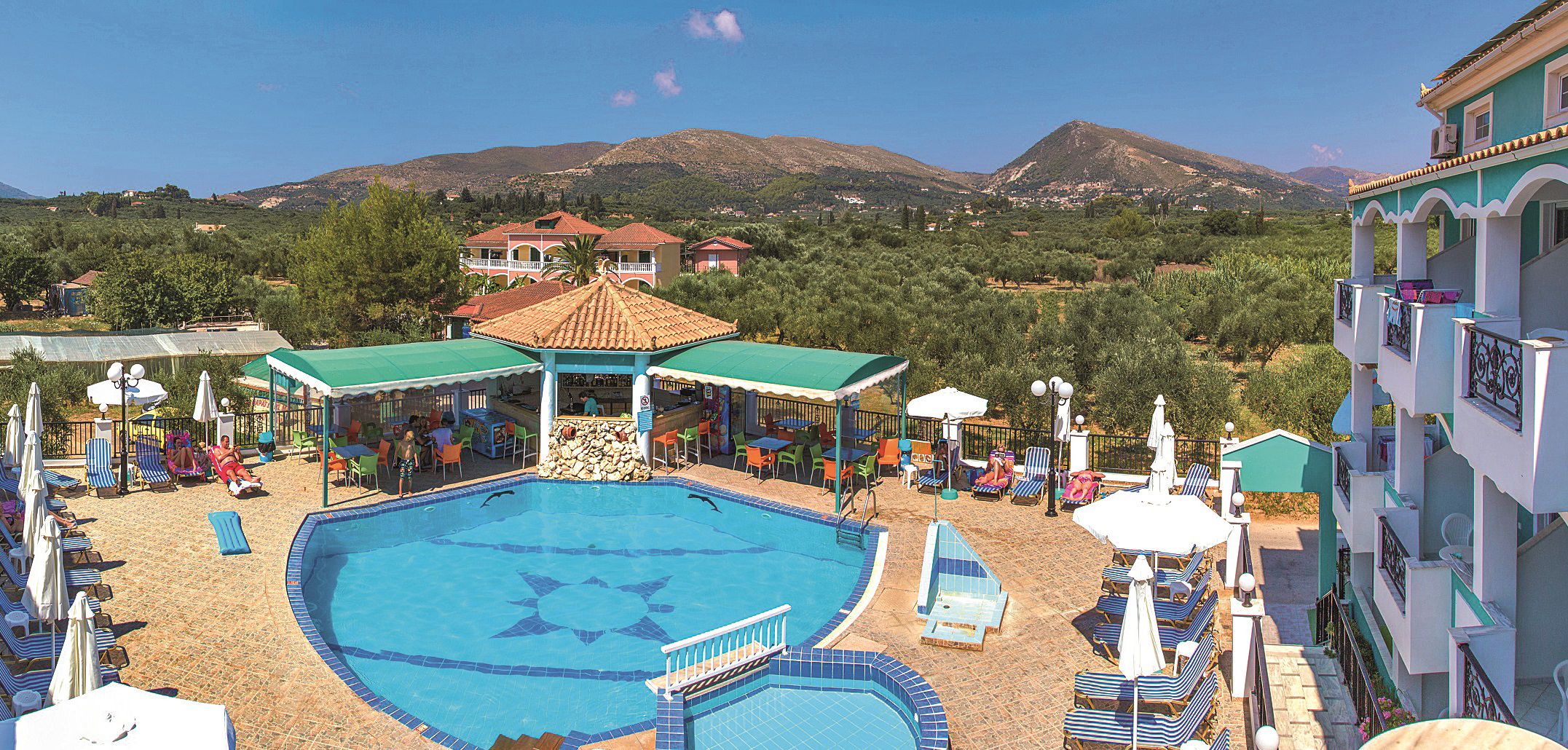 George & Dawn is de ideale uitvalsbasis voor een onvergetelijke vakantie op het prachtige eiland Zakynthos! Het complex is rustig gelegen tussen de olijfbomen nabij het centrum en strand van Agios Sostis. Met slechts 28 appartementen is het complex kleinschalig, waardoor er een gezellige en intieme sfeer is. Onder het complex vind je een supermarktje, waar je dagelijks verse broodjes kunt kopen. Zo kun je elke ochtend voordat je het eiland gaat verkennen, in de Griekse zon genieten van een vers ontbijtje op het balkon. Geen zin om er op uit te trekken? Breng dan de dag door bij het zwembad van het complex. Lekker luieren op een ligbedje, dobberen in het zwembad of een drankje drinken bij de pool bar. Het kan allemaal bij George & Dawn. Wij proosten alvast op een fijne vakantie; Yamas! TIP: boek deze vakantie als Fly & Go * Gemak voorop: pakketreis met vlucht + deze accommodatie + huurauto * De verzekering voor je auto is geregeld * Vrijheid en avontuur: ontdek in je eigen tempo je vakantiebestemming Bekijk deze Fly & Go vakantie ()