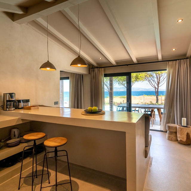 De eigenaren Terry en Haris komen zelf al sinds hun jeugd op deze plek dat al jaren in bezit is van dezelfde familie. Het oude zomerhuis heeft plaats gemaakt voor een uniek optrekje. Omdat alles nieuw is gebouwd, geniet je hier echt van ultiem comfort. Zo heeft elke villa een eigen patio, toegang tot het schitterde infinitypool én een heerlijke inloopdouche. Een duik in zee nemen? Dan hoef je gelukkig niet ver; het zandstrand vind je op slechts 50 m. afstand. Ontdek jij net als ik ook graag de omgeving tijdens de vakantie? Met je huurauto ben je zo op de mooiste plekken zoals de Drogarati druipsteengrotten, kleurrijke bergdorpen en knusse baaitjes van Myrtos en Antisamos. In de grotten worden zelfs concerten gegeven, wat een bijzondere ervaring!
