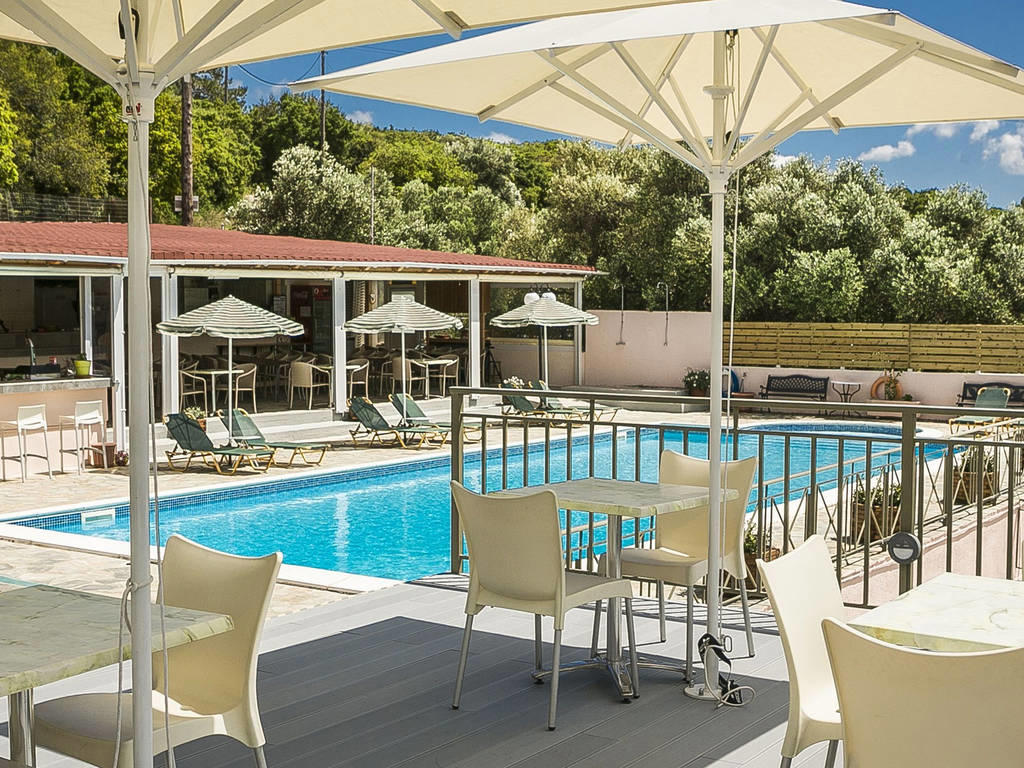Naast het zandstrand is het ook heerlijk vertoeven op de gratis ligbedjes aan het zwembad. Van de Griekse zon moet natuurlijk geprofiteerd worden! Wat natuurlijk wel belangrijk is, is dat je met het warme weer goed gehydrateerd blijft. Aan de pool bar haal je je drankjes. Voor een lekkernij loop je makkelijk naar het dichtbij zijnde bakkertje.
