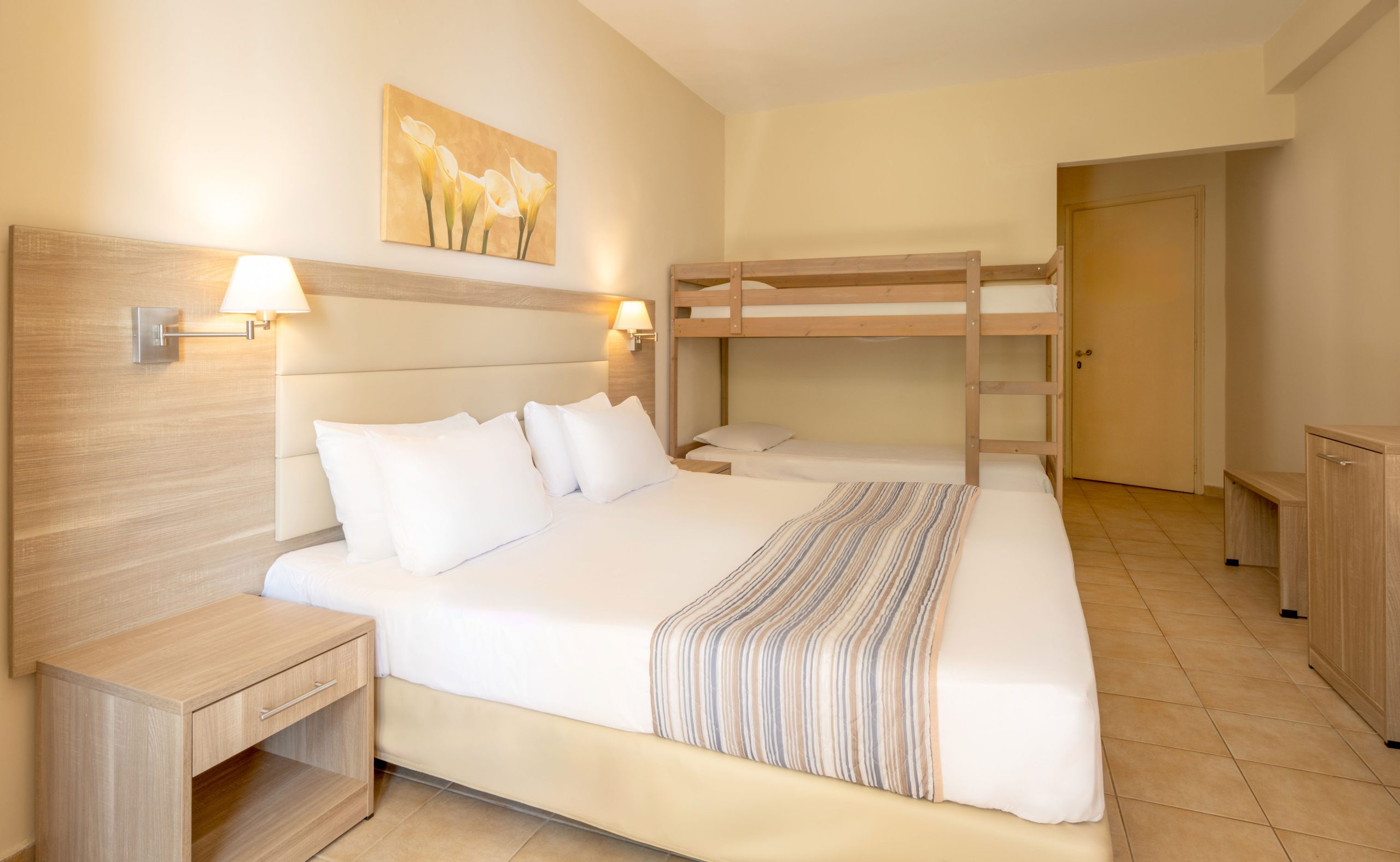 Je voelt het meteen als je richting je kamer loopt. De rust en ruimte geven je direct dat vakantiegevoel. Hotel Lyttos Beach mag zich gelukkig prijzen met een ligging aan één van de mooiste stranden aan de noordkust van Kreta. Dat wordt een fijne tijd. Strandje pakken, een potje beachvolleybal of tennis, een boek lezen... Terwijl de kinderen de hele dag de glijbanen af roetsjen of bij de miniclub druk bezig zijn met knipsels en plaksels. Ontbijt, lunch en diner zijn inbegrepen en het smaakt je erg goed, dus je schept lekker een tweede keer op. Uitbuiken doe je op de fijne kamer, in de Familiesuite is ruimte genoeg.