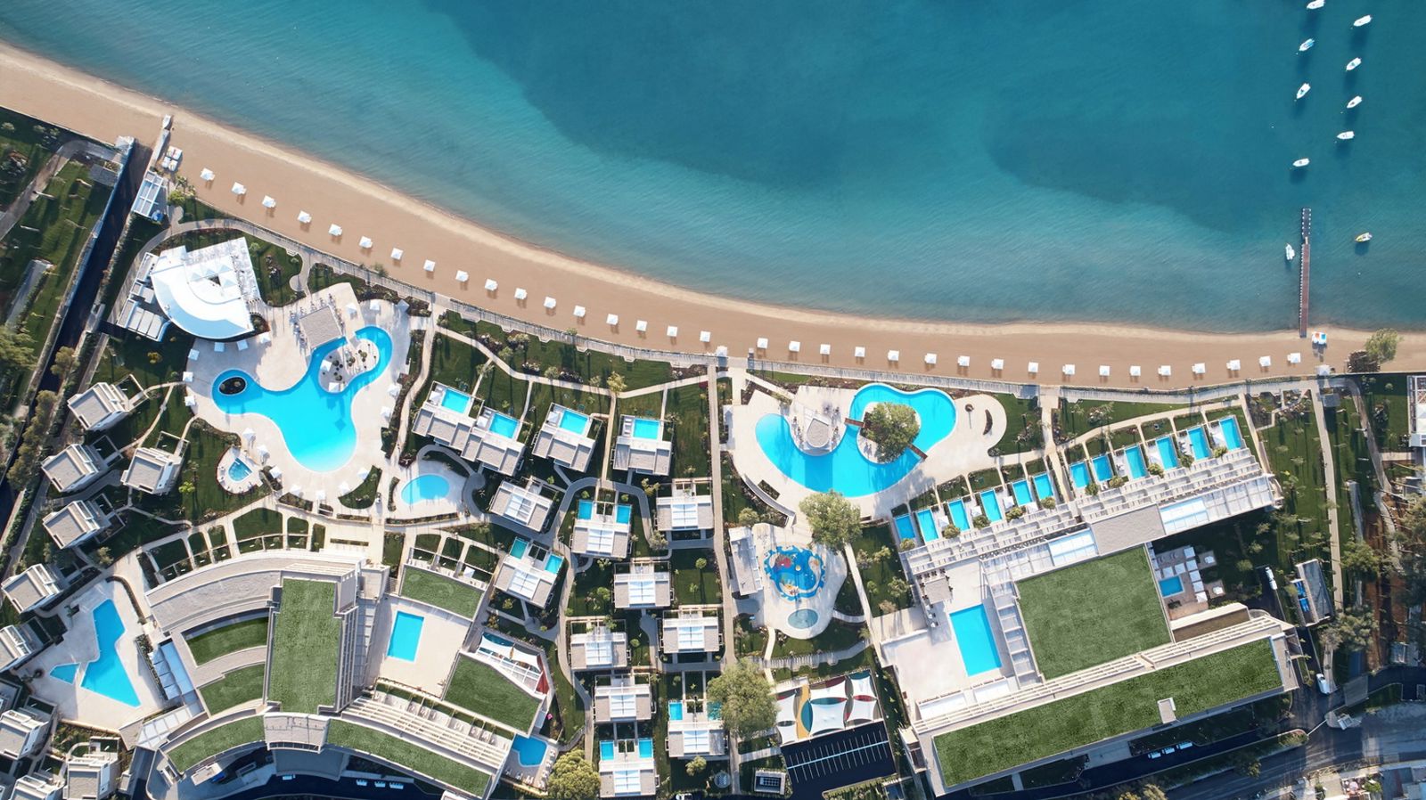 Zodra ik het smalle paadje volgde dat langs de olijfbomen kronkelde, werd ik overvallen door een gevoel van tropische luxe. Voor me lag een kleine oase: vier elegante villa's met houten accenten en grote ramen, verscholen tussen het groen. Het zwembad stroomde als een kalme rivier langs de villa's, met achter elke heg een eigen stukje paradijs. Op mijn privéterras pruttelde de jacuzzi uitnodigend voor een avond onder de sterren. Het uitzicht over zee was magisch, alsof de horizon speciaal voor mij geschilderd was. Hier voelde alles licht, warm en exclusief. Hier wilde ik blijven.
