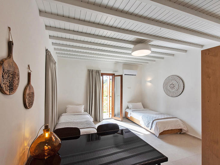 AMMOO is ontworpen voor twee: adults only, dus perfect voor een romantisch uitje met z'n tweeën. De suites zijn heerlijk ruim en bieden naast privacy ook fijne extra's, zoals een terras met buitenlounge, indoor én outdoor douches, en zelfs wat slimme workout gear voor wie tussen het luieren door nog wat energie kwijt wil. En een fijne verrassing: bij aankomst staat er een volle koelkast klaar, gevuld met lokale lekkernijen, snacks en drankjes. De ligging aan de rustige zuidkust van Karpathos - vlak bij het strand en charmante dorpjes - maakt het helemaal af. Hier draait alles om ontspanning op niveau, met oog voor detail en een uitzicht waar je stil van wordt.