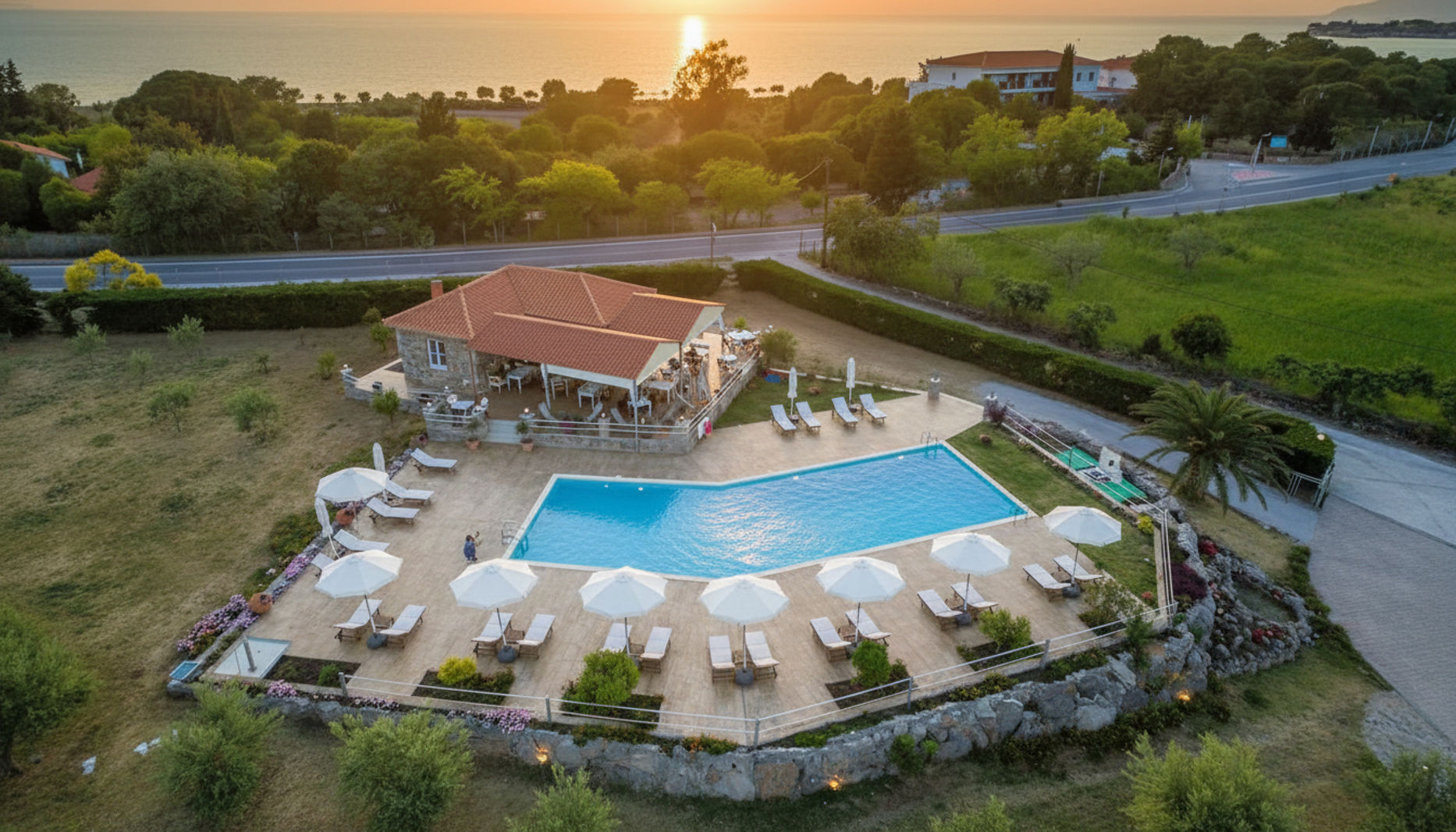 Je wordt wakker met het zachte licht dat langs de leistenen paden valt. Vanuit je appartement stap je zo een rustige tuin in waar bougainvillea over de muren hangt. Bij het zwembad kies je een bedje uit en luister je hoe het water zacht tegen de rand tikt. De appartementen voelen comfortabel en praktisch, precies wat je nodig hebt voor lange dagen in de zon. Een klein terrasje is de ideale plek voor een ontbijt in de ochtendkoelte, terwijl je plannen maakt voor de dag. Het strand ligt op korte loopafstand en onderweg kom je langs bakkers, tavernes en kleine winkeltjes waar je de lokale sfeer meteen oppikt. In de buurt vind je een paar gezellige beachbars waar je na een zwembeurt even neerstrijkt. Of je blijft juist bij het complex en zoekt de rust op van de tuin. Zo vormt deze plek een fijne combinatie van eenvoud, gemak en het warme ritme van het Kretenzische leven.