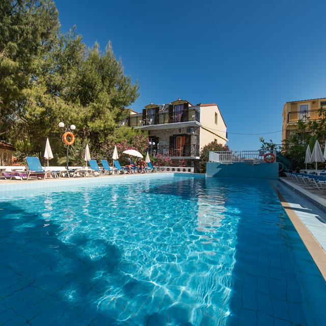 Sunweb Villages Appartementen Two Brothers is een sfeervol vakantieadres op loopafstand van het centrum van Kalamaki. Het interieur van de studio’s en appartementen is licht en sfeervol en naast een heerlijk balkon beschikken ze allemaal over een fijne moderne kitchenette. In de mooie tuin vind je het zwembad, waar je kunt genieten van een verfrissende duik en lekker kunt relaxen op een van de ligbedjes.