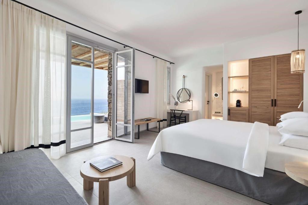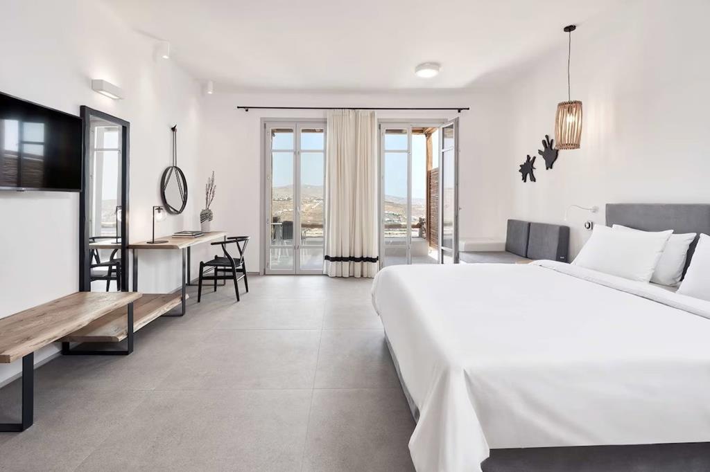 Helder water, een cocktail in je hand en jij? Dat is vakantie op Mykonos. Aan de baai van Kalo Livadi ontdek je dit pareltje met gezellige strandbars en livemuziek om de hoek. Het infinity zwembad biedt een uitzicht dat je sprakeloos maakt. Na een dag Griekse zon wacht je elegante kamer. Of kies voor me time in de spa en fitness. In het restaurant proef je de Middellandse Zee, terwijl bij de zwembadbar verse sapjes en lokale wijnen lonken. Vakantiemodus aan en Live Happy!