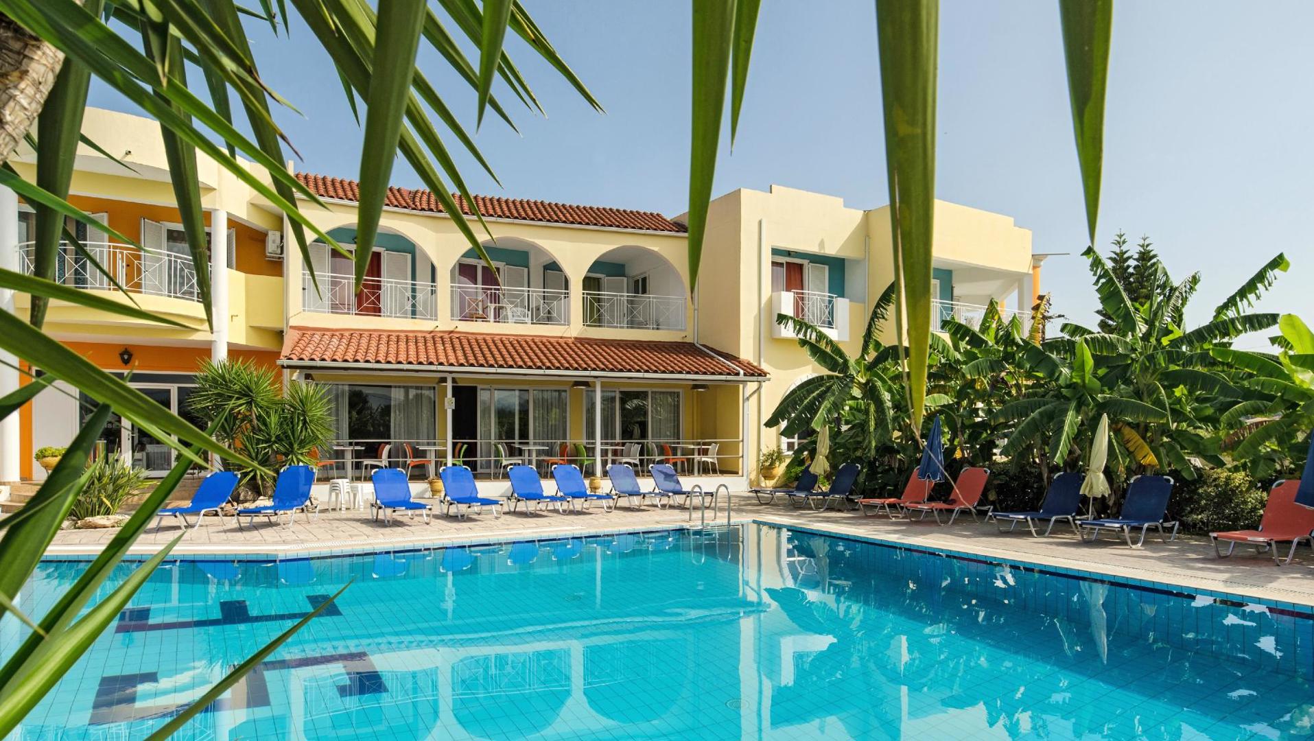 Het Sunrise hotel is een modern hotel, omgeven door olijfgaarden. Wat een charmante setting. Dé ideale plek om even helemaal tot rust te komen en je druktes van thuis ver achter je te laten. Je komt er heerlijk tot rust op je ruime, comfortabele kamer of bij het fijne zwembad. Wil je toch de gezellige drukte opzoeken? Dan vind je diverse winkels, restaurants en het strand op loopafstand. Pak snel je koffer, pak je zwemkleding in en boek snel je vakantie naar dit fijne hotel. Laat de voorpret nu beginnen.