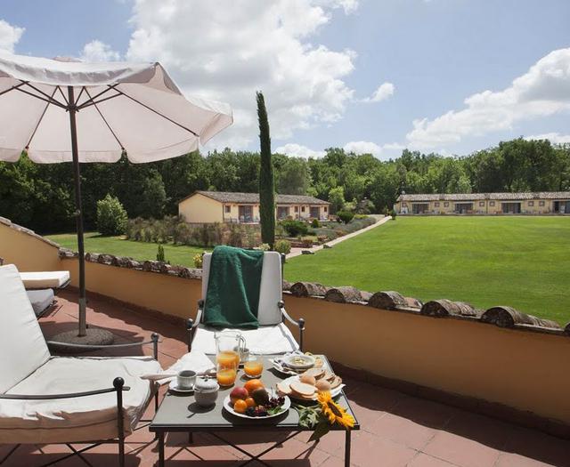 Naast een ruime, authentieke kamer met een adembenemend uitzicht op de wijngaarden en heuvellandschappen, is er ook een uitstekend restaurant en een groot zwembad. Je kunt hier zoveel doen en beleven. Morgen wil ik Toscane gaan verkennen. Maar hoe? Zal ik per fiets of te voet er op uittrekken? Of toch per paard? Het kan namelijk allemaal. Ik beslis morgen wel. Nu eerst even genieten van een heerlijke, Toscaanse maaltijd in het restaurant.