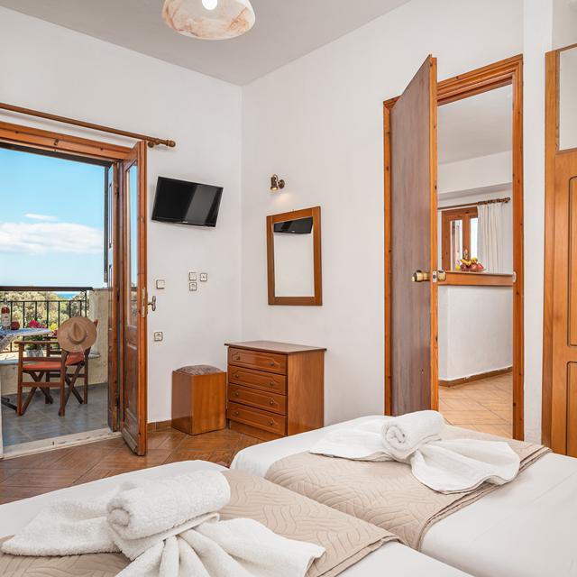 Tussen de prachtige olijfboomgaarden ligt Appartementen Sonia. Hier staat heerlijk relaxen centraal. Je loopt zo naar het dorpje Votsalakia, waar je charmante barretjes en taverna's aantreft. Het traditionele Marathokampos ligt iets verder weg, maar is zeker de moeite waard om ook eens te bezoeken. Vlakbij ligt een heel fijn strand waar je iedere dag heerlijk kunt genieten van de zee en het Griekse zonnetje.