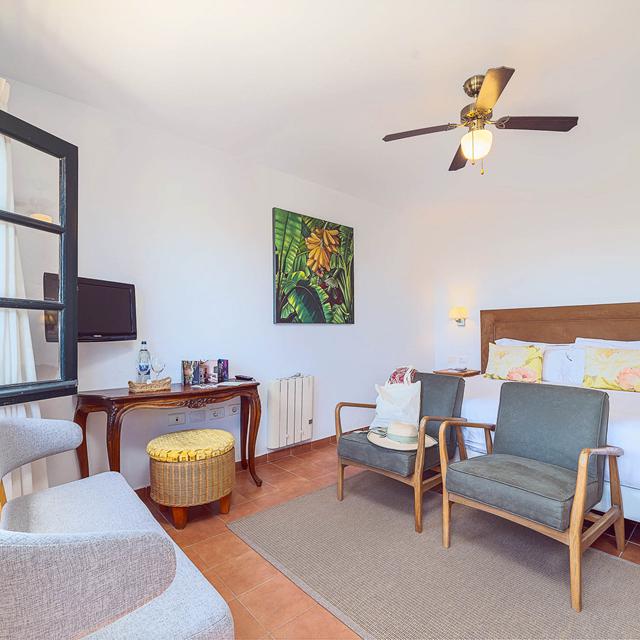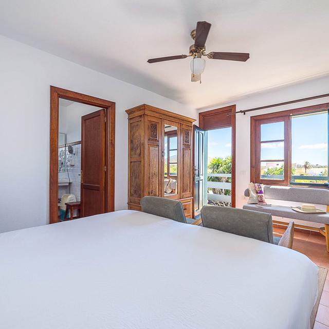Feit is wel dat de familie van Maria al eeuwenlang een schitterende boerderij in bezit heeft: Bodega el Grifo. Deze 18de eeuwse finca is nu een stijlvol ingericht hotel, en herbergt tevens één van Lanzarote’s beste restaurants. Het interieur bevat veel antieke meubelen en ademt de sfeer van vroeger, maar heeft toch een eigentijdse uitstraling. Een week lang heb ik genoten van de grote tuin, de heerlijke maaltijden in het restaurant en de prachtige omgeving. En Maria, die moest elke keer grijnzen als ze me zag. Zo’n goedgelovige gast als Eliza had ze nog nooit gehad…