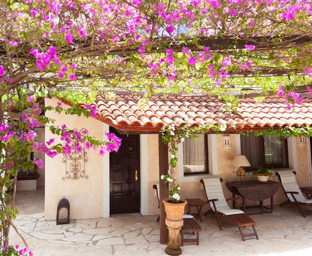 Vlak bij de haven van Sant Miguel ligt hotel Rural C’as Pla stilletjes op een heuvel, omgeven door bossen, palmbomen, bloeiende tuinen en doorkijkjes naar de zee verderop. Toen ik aankwam, stond eigenaar Massimo mij samen met zijn hond op te wachten. En al gauw begreep ik dat ook bij Massimo ‘genieten van het mooie leven’ door zijn aderen stroomt. Binnen in het hotel vind je zitjes, banken en stoelen om te kletsen, een boek te lezen of even weg te dromen. Buiten is een terras op het dak met uitzicht op zee of de sterren in de nacht, of je strijkt neer op het zonneterras bij het zwembad of drinkt een drankje bij de bar. En daar mag je pakken waar je zin in hebt. ‘Wel even zelf bijhouden wat je drinkt.’ Wil je bewegen? Dan duik je de mini-gym in om daarna bij te komen in de sauna of het Turkse stoombad. Een wandelingetje door de bloeiende tuin? Wat je wilt.
