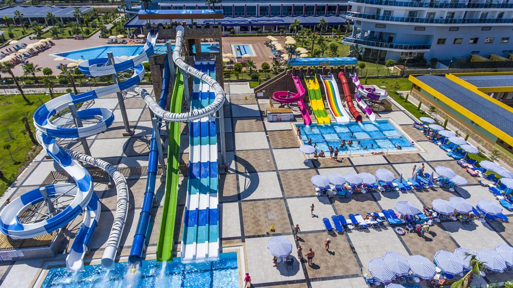 Dit resort in Alanya heeft een uitgebreide 24 uurs All Inclusive, zeer ruime en moderne kamers en een groot zwembad met aquapark waar de kids zich de hele vakantie prima zullen vermaken. Maar dat is nog niet alles, op circa 100 meter ligt Eftalia Island. Dit is fun, fun en nog eens fun! En hoe makkelijk kan het zijn, het ligt gewoon voor de deur. Even de tunnel door en je bent er. Hier vind je op het strand een aquapark, restaurants, discotheek, bars, een spa center, fitness, sportieve activiteiten, shops en een 18 lounge gedeelte. En als dat nog niet genoeg is, ook hier is het all inclusive concept geldig. Dit wordt genieten in Turkije!