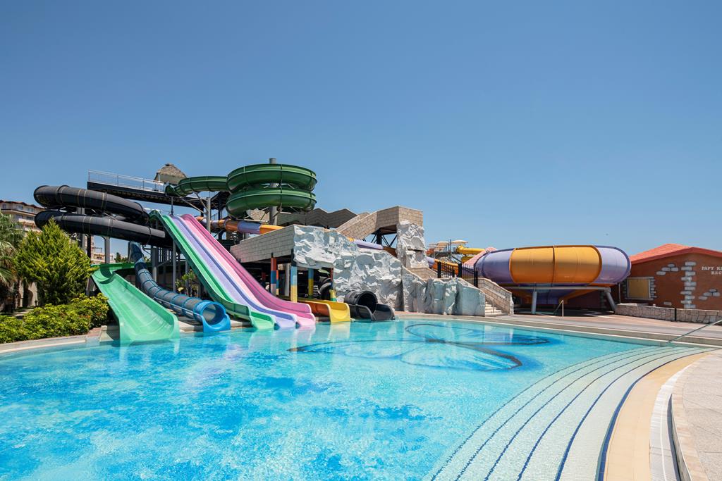 Gelegen in een groene omgeving met vele palmbomen vindt je dit moderne hotel. Met de vele activiteiten voor zowel jong en oud is dit hotel een uitstekend vakantieadres voor families. Of je nou wilt ontspannen bij één van de zwembaden, een yoga volgt in de grote tuin of samen met de kids alle glijbanen van het resort uit probeert. Niks is hier te gek. Over de kinderen hoef je je deze vakantie helemaal niet druk te maken. De diverse kidsclub’s maken deze vakantie om nooit te vergeten. De activiteiten voor de kleine gast zijn er namelijk teveel om op te noemen. ’s Avonds is het weer kiezen geblazen. Naast de gevarieerde buffetten in het hoofdrestaurant, heb je nog de keuze om bij 4 à la carterestaurants aan te schuiven. Wordt het vanavond smullen van de Italiaanse keuken? Of kies je toch voor Aziatisch. Er is voor ieder wat wils. Na het diner kan je gezellig mee swingen met de muziek die de dj uit de boksen laat knallen. Şerefe!