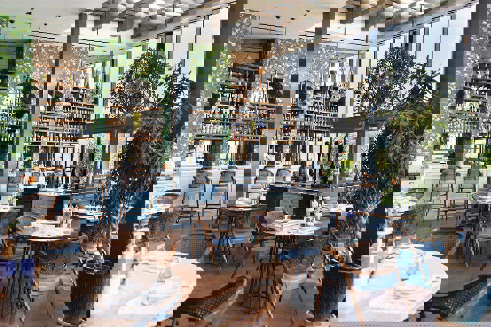 De kamers liggen verspreid in bungalows van twee verdiepingen hoog en worden omgeven door weelderige tuinen. Ze zijn stuk voor stuk schitterend ingericht met witte en lichtblauwe tinten, ramen van de grond tot het plafond en heerlijke boxspring bedden. Uitrusten gaat hier vanzelf en je laadt weer helemaal op.