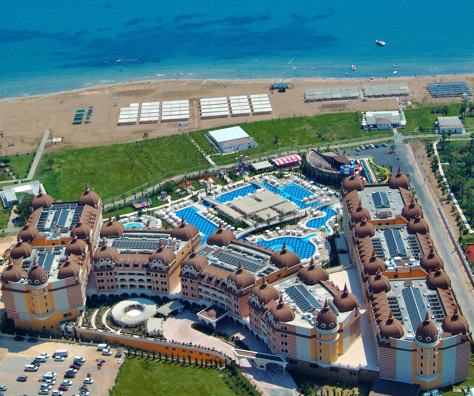 Het Royal Alhambra Palace heeft een prachtige architectuur en klasse het lijkt erop dat de Stone Group Keten het weer is gelukt om een bijzonder hotel te creëren. Gelegen direct aan het privéstrand, in een prachtige tuin met oude bomen, smelten eenheid en puurheid samen met luxe en comfort. Dit hotel biedt vele faciliteiten zoals een groot zwembad van wel 2.500 m2, diverse waterglijbanen en een mini pretpark. De vele faciliteiten maken dit een ideaal hotel voor een onbezorgde familievakantie!