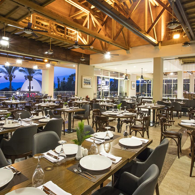 Alle maaltijden worden in buffetvorm geserveerd. In Mario’s Restaurant kun je genieten van à-la-cartegerechten en Italiaanse specialiteiten, terwijl Mandarine Gourmet exotische Aziatische gerechten biedt. In de overige restaurants op het terrein worden Turkse specialiteiten, steaks en gerechten met verse vis, schelp- en schaaldieren geserveerd.