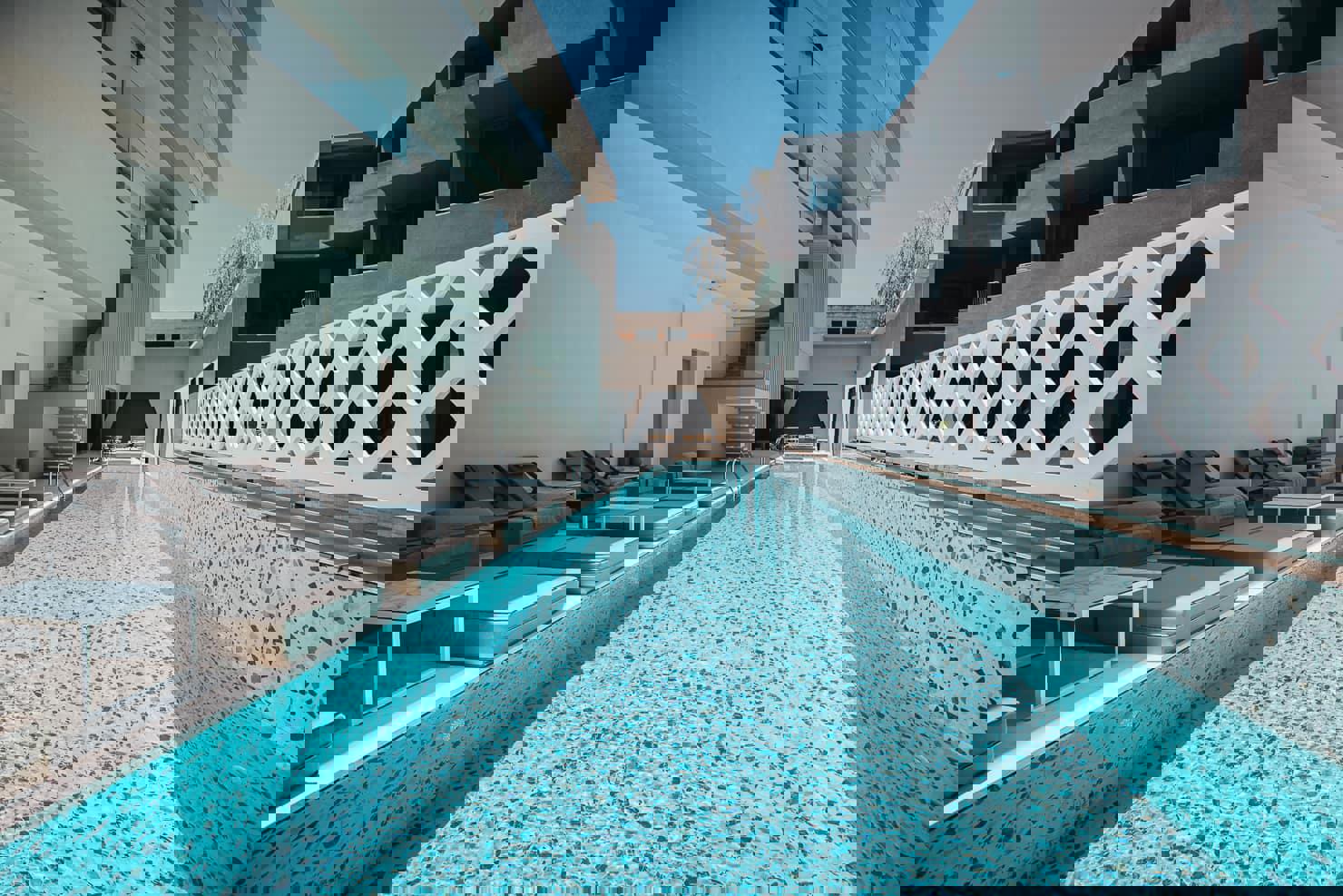 Wanneer ik binnenstap, merk ik al gauw dat dit gebouw vanbinnen vol verrassingen zit. Muren zijn voorzien van opvallende, maar toch rustgevende kleuren. Turquoise, terracotta, okergeel… Ik kijk verwonderd om me heen wanneer ik word aangesproken door een vriendelijke vrouw. Ze stelt zich voor als de eigenaresse Laly en glundert. “In dit hotel staat relaxen centraal. Mijn doel? Dat mijn gasten in elke ruimte tot rust kunnen komen. Het zwembad op de binnenplaats is uitgegraven met vulkaanlava, wat een lokaal tintje geeft.” Trots en enthousiasme stralen van zijn gezicht. “Ik blijf graag een paar nachten logeren!” zeg ik hem dan.