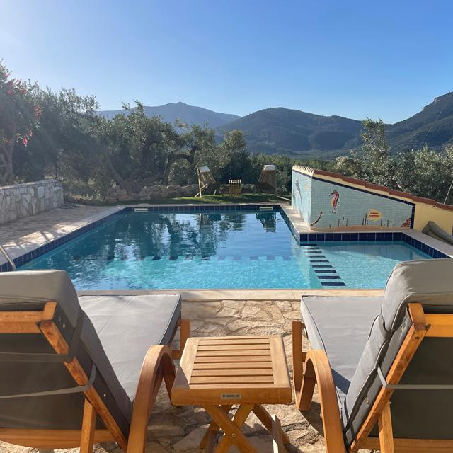 Terwijl ik neerplof op het terras met uitzicht op de baai van Epidavros, voel ik een glimlach opkomen. De zon zakt langzaam achter de bergen, het zwembad glinstert en de geur van citrusbomen waait zachtjes over. Hier, tussen 130 olijfbomen, sinaasappelbomen en een indrukwekkend uitzicht over zee, hebben Nienke en Michel hun droom tot leven gebracht. Ik proef het in alles: de zorg waarmee de studio's zijn ingericht, het flesje wijn dat voor me klaarstaat, de uitnodiging om aan te schuiven bij een dineravond met lokale gerechten. Dit is geen vakantieverblijf - dit voelt als een hartelijk welkom.
